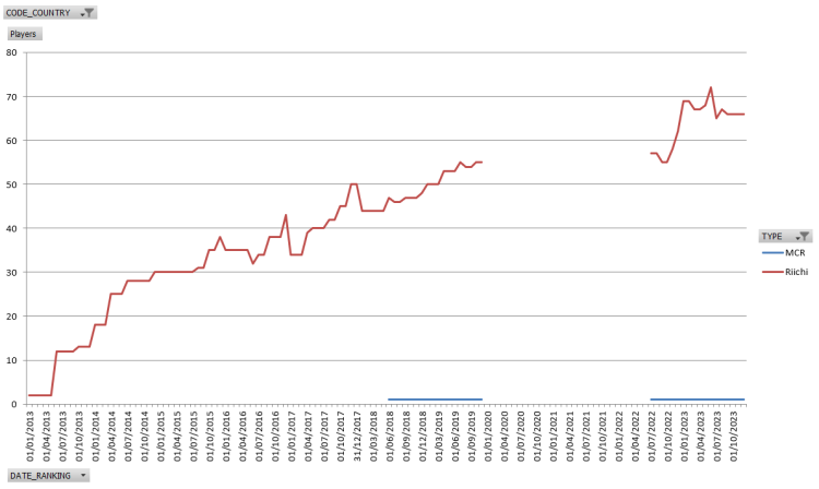 - The graph shows the number of active and ranked players in EMA ranking lists
